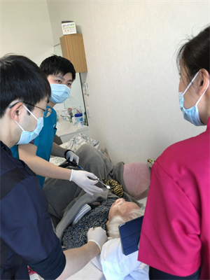 また、患者さまご本人や家族の方に、歯みがきの方法や入れ歯のお手入れについて、丁寧にお教えするのも診療のひとつです。ご高齢の方に気をつけていただきたいのが、誤嚥性肺炎です。お口の中が清潔でないと、高齢者の方では特に細菌感染が起こりやすくなります。口腔内を清潔に保つことは、虫歯や歯周病の予防だけでなく、誤嚥性肺炎などの予防にもつながるといわれており、健康維持にとても大切なことであるといえます。