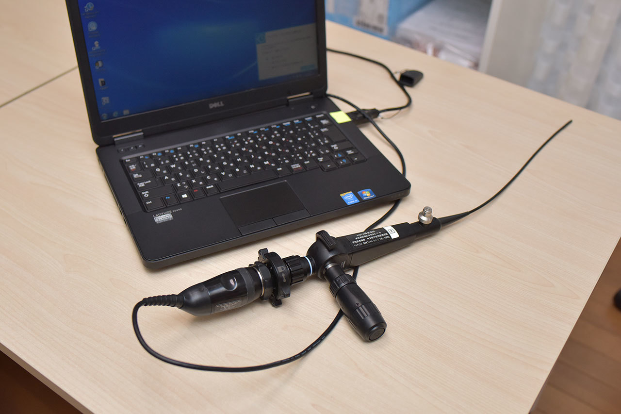| 歯科医院にて用いるレントゲン機器を持ち運び可能にした機器です。寝たきりの患者様にも使用できますので、わざわざレントゲン撮影の為に来院する必要はございません。(コンセントをお借りします) | 直径約3mmの内視鏡を鼻から入れて、飲み込みの機能を調べる機器です。摂食嚥下リハビリの為の状況観察に必要です。(コンセントをお借りします) |